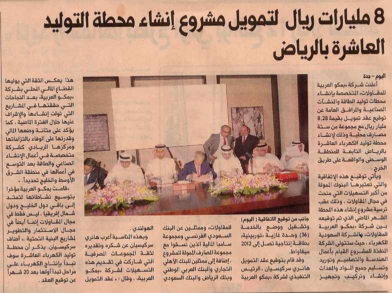 stations, industrial facilities and public utilities, has signed a US$ 2.2 billion agreement with a group of local banks. This is a multi-purpose facility for the construction of the (PP 10) Power Plant in Riyadh.